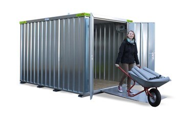 Fahrzeug Service Tuchen entscheidet sich für drei Lagercontainer mit patentiertem Schnellbausystem zur werkzeugfreien Montage.