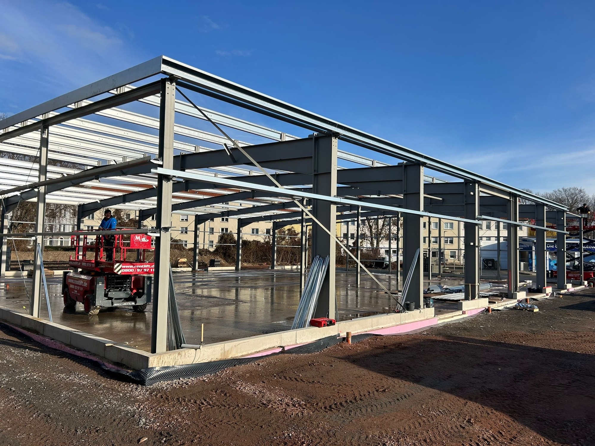 Stahlhallen Montage von Hacobau GmbH im Harz.