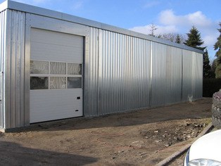 als Großgarage und Lager für Abschleppdienst Schnellbauhallen