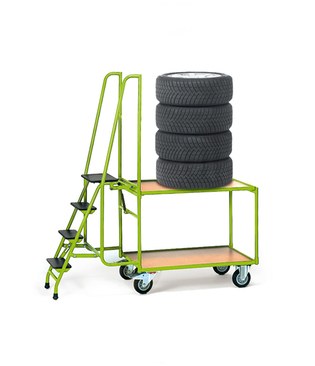 Reifenkarren Reifenwagen / Podestleitern / Lastenaufzüge / Hochregalstapler sowie Reifenregale / Reifenlagerhallen / Reifencontainer /.